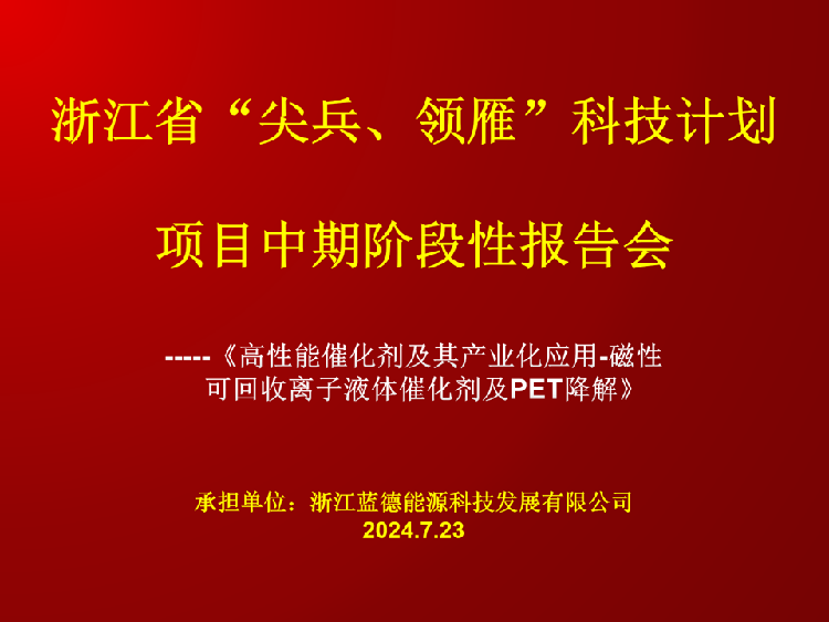 شرکت توسعه فناوری انرژی Zhejiang LDET ، آموزشی ویبولیتین کار تحقیق و توسعه "پیشتاز" و "رهبر" پروژه های علمی و تکنولوژیکی استان ژجیانگ را انجام داده است - "کاتالیزورهای با کارایی بالا و کاربردهای صنعتی آنها - کاتالیزورهای مایع یونی بازیافت مغناطیسی و تخریب حیوان خانگی". تیم تحقیق و توسعه پروژه LDET با موفقیت نسل اول "سه در یک" کبالت نانو فلزی مبتنی بر فناوری یونیک کاتالیزور مایع ، تخمیر PET کارآمد را بدست آورد و مونومر BHET با خلوص بالا را بدست آورد. آزمایش آزمایشی به پایان رسیده و به نتایج خوبی رسیده است. با مقایسه پیشرفت های انجام شده در آزمایش در مقیاس کوچک با داده های عمومی شرکت هلندی Ornica ، نتایج حاصل از آن اساساً به سطح پیشرفته بین المللی رسیده است. کاتالیزورهای مایع یونی مبتنی بر نانو فلز خود توسعه یافته ما یک مسیر ابتکاری پیشرو در جهان را برای بازیافت حلقه بسته کارآمد PET با استفاده از روشهای شیمیایی برای به دست آوردن "مواد شیمیایی با خلوص بالا و بالا" BHET "بررسی کرده اند. $ $ $ $ $ $ $