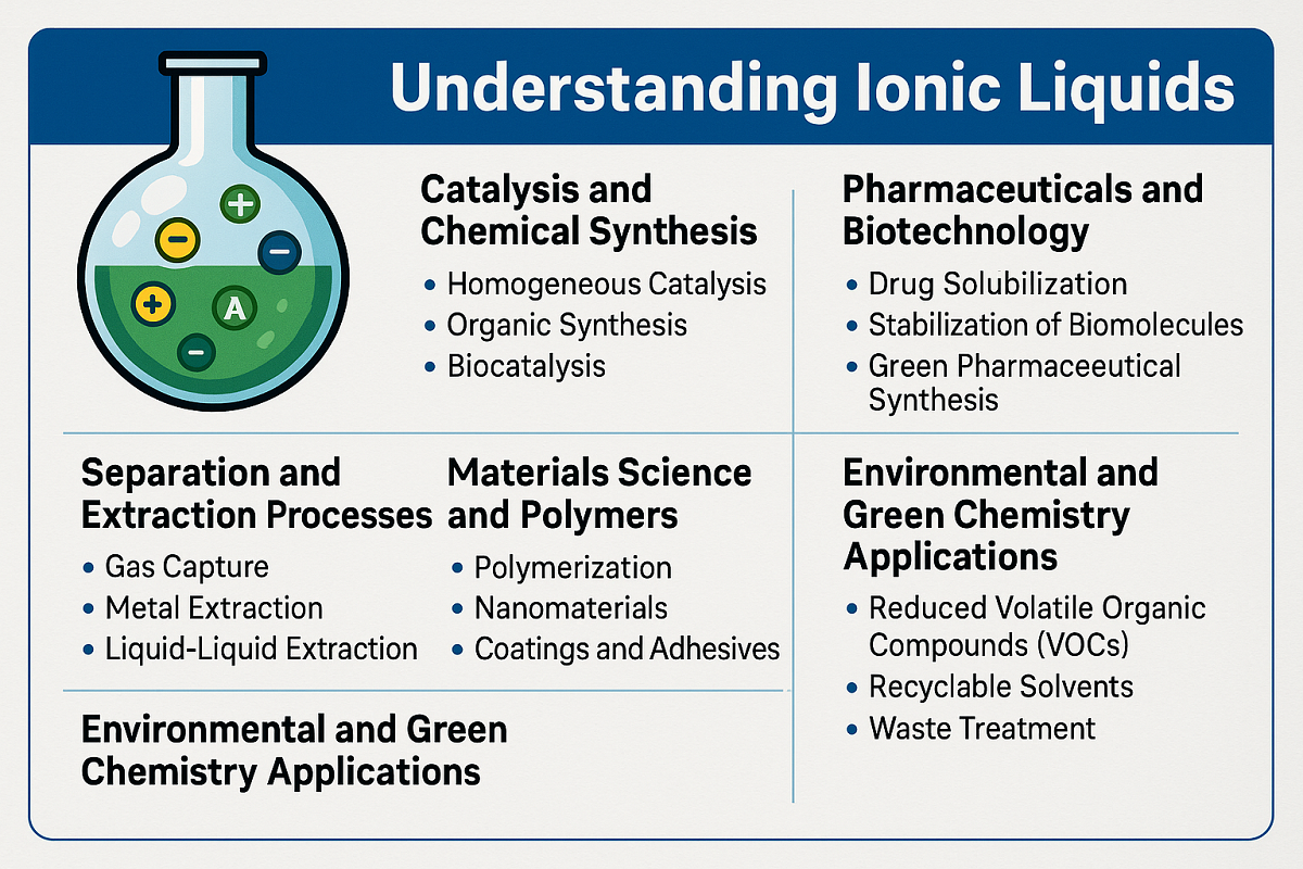 مایعات یونی (IL) به عنوان یک کلاس تبدیل کننده از ترکیبات شیمیایی در صنعت مدرن ظهور کرده اند. این نمکها که کاملاً از یونها تشکیل شدهاند، در دماهای نسبتاً پایین، اغلب زیر 100 درجه سانتیگراد، مایع باقی میمانند. خواص منحصر به فرد آنها - از جمله فشار بخار ناچیز، پایداری حرارتی بالا، انحلال پذیری قابل تنظیم و هدایت یونی استثنایی - آنها را به جایگزین های جذابی برای حلال ها و معرف های آلی سنتی تبدیل می کند. در طول دو دهه گذشته، مایعات یونی از تحقیقات آزمایشگاهی به طیف گستردهای از کاربردهای صنعتی گسترش یافتهاند و بر زمینههایی از کاتالیز تا ذخیره انرژی، داروسازی و پردازش مواد تأثیر گذاشتهاند.